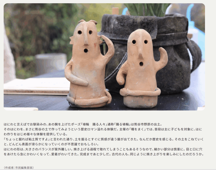 ・熊谷の土で「踊るはにわ」作り「お裾分け旅おとなり(熊谷市観光協会)」
