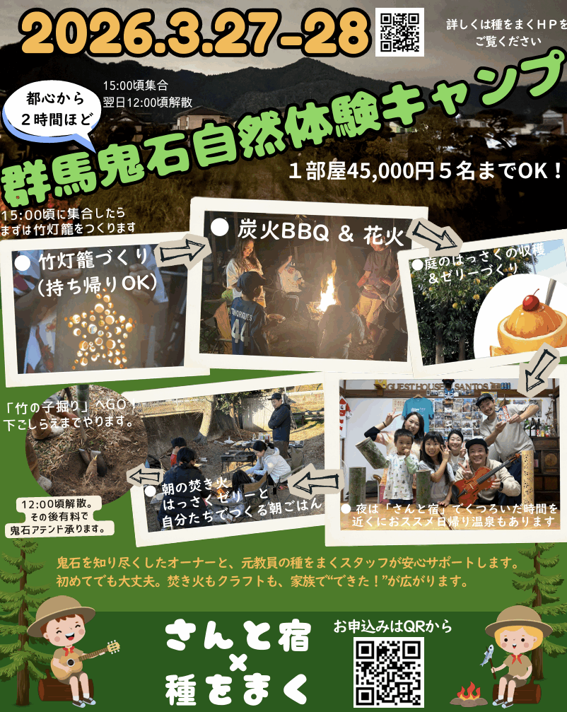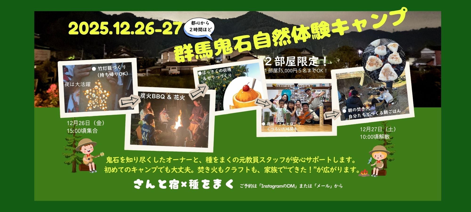 種をまく&さんと宿 群馬 鬼石自然体験キャンプ